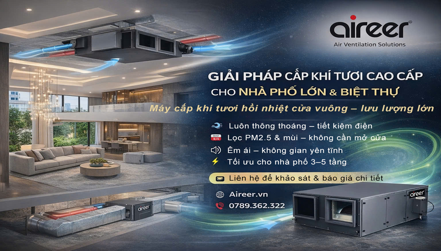 Hệ thống cấp khí tươi thu hồi nhiệt toàn phần thương hiệu Aireer